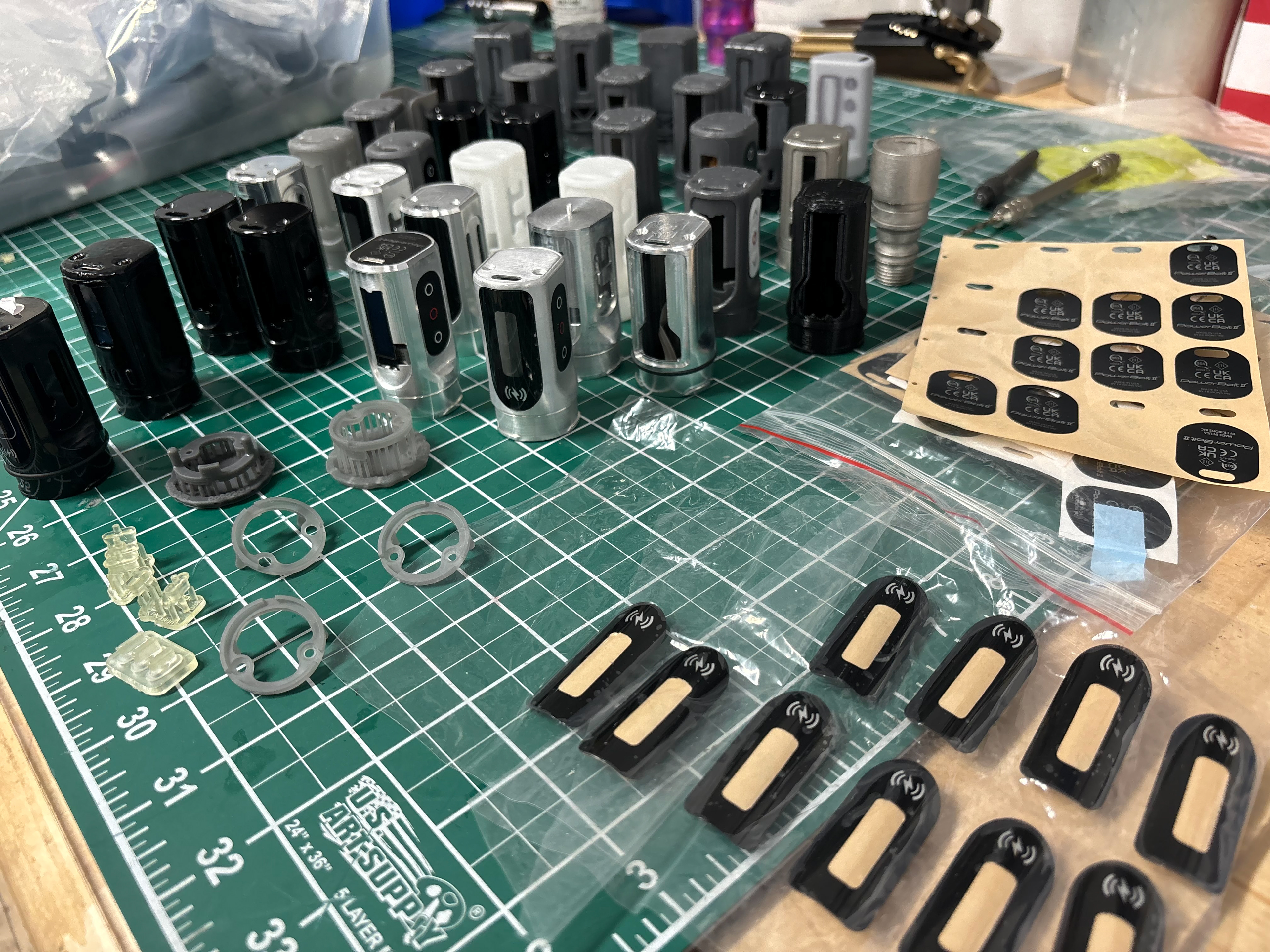 The design revolved around the main motor housing. This was the key component that the grips and battery pacts interacted with. The milled aluminum housing with a tightly packed motor mount delivers unrivaled performance. The newly added 4.5mm stroke meant that the machine’s tolerances needed to be tightened so that the overall construction did not loosen when the machine was operating. The threading was even extended to accommodate a longer “needle throw” (when an artist adjusts the length in which the needle sticks out from the machine) so that artists could dial in their preferences even further.