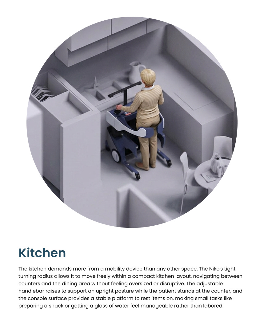 For elderly adults with limited mobility, daily life is defined by a handful of spaces: the bedroom where the day begins, the bathroom where personal care happens, and the kitchen where small tasks still matter. Each of these spaces presents its own physical demands, and at the center of nearly all of them is the same challenge of having to getting up from a seated position. The act of transferring from a bed, a chair, or a toilet requires coordinated muscle engagement, balance, and confidence that diminishes significantly with age or disability.