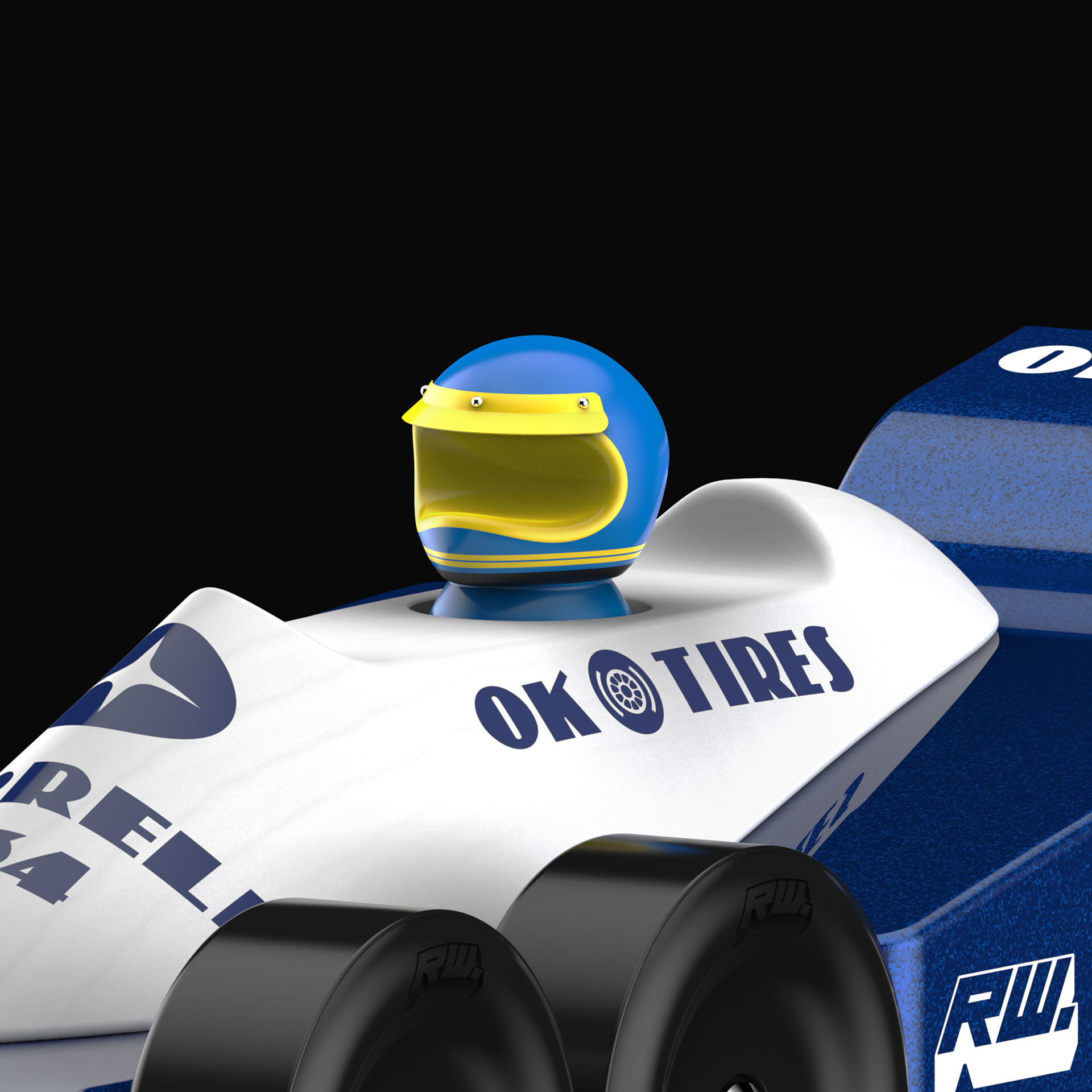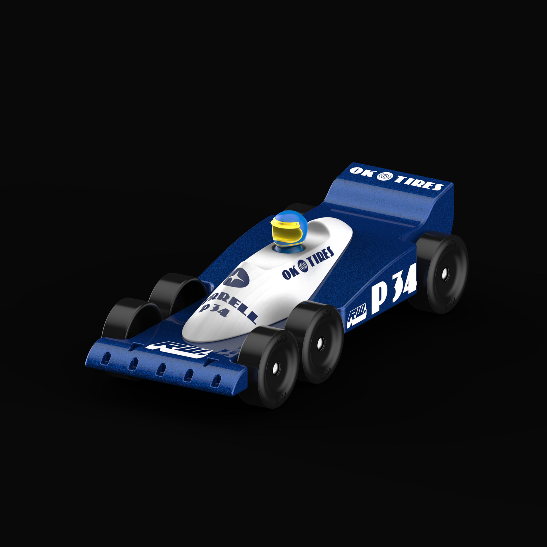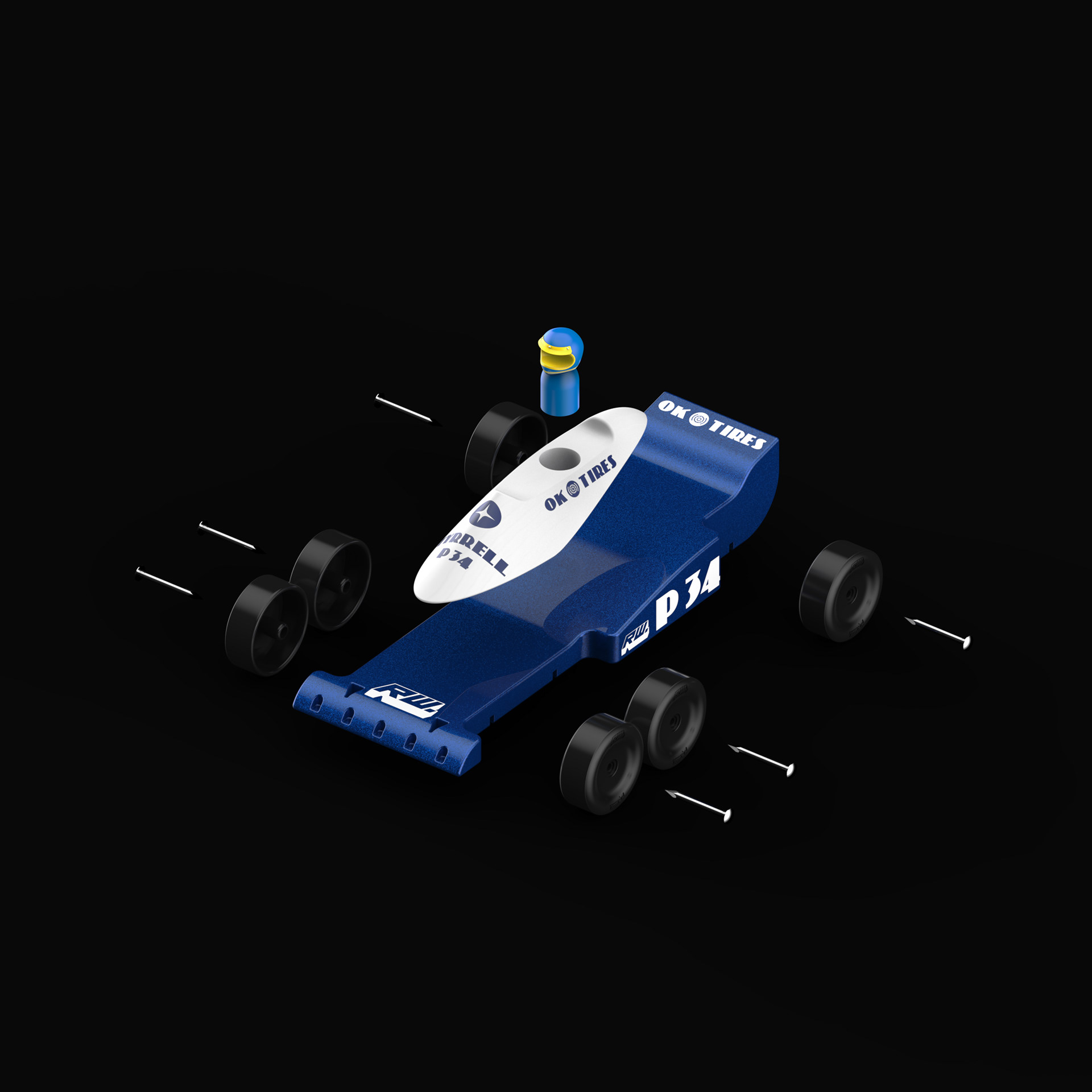The P34 debuted in September 1975 and raced in the 1976 F1 season. Its innovative use of small front tires, tucked behind the wing, reduced drag and improved aerodynamics. This made it faster and cooler! The Render Weekly prompt was such a blast from the past because I grew up making these all the time. I learned how to woodwork and got to spend time with my dad as we tried creating cool concepts. I wanted to design this in a way that could be cut using a bandsaw / jigsaw as the main tools for shaping. It is made from the provided wood limits but I did cheat and gave myself 2 extra wheels. Also the driver is named Chuck.